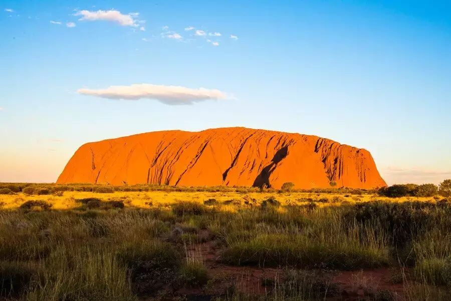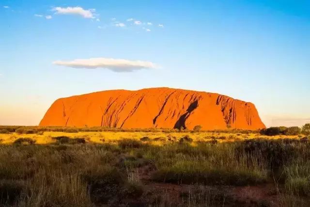 在 澳洲廣袤無際的紅土地上,陡然出現這樣一塊巨大的岩石,著實讓人迷惑不解,它是億萬年前與澳洲大陸一起凸出水面,原本就是海底的一塊巨大岩石?還是從外太空墜落的隕石?恐怕沒有人能說的清。更神奇的是,它幾乎處於澳大利亞大陸中央的位置!